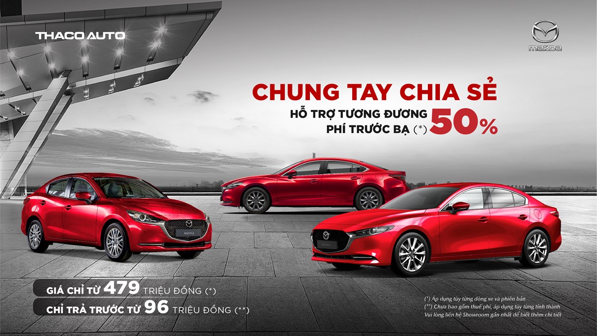 Với mong muốn đồng hành với người tiêu dùng trong bối cảnh dịch Covid -19 đang diễn biến phức tạp, Mazda Phạm Văn Đồng triển khai chương trình đặc biệt với mức hỗ trợ tương đương 50% phía trước bạ (*). Khách hàng mua xe Mazda trong tháng 8 còn nhận được ưu đãi với giá trị cao nhất lên đến 120 triệu đồng, bao gồm ưu đãi giá, một năm bảo hiểm vật chất và gói nâng cấp chính hãng, áp dụng theo điều kiện và điều khoản từ thương hiệu.