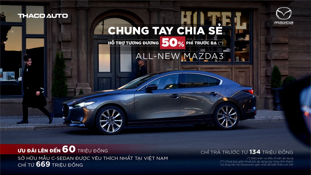 Bên cạnh các mẫu SUV, khách hàng mua hai mẫu sedan New Mazda2 và New Mazda3 trong tháng này cũng được hỗ trợ tương đương với 50% lệ phí trước bạ. Trong đó, New Mazda 3 có mức hỗ trợ lên đến 60 triệu đồng, tạo điều kiện cho khách hàng dễ dàng sở hữu mẫu xe thế hệ thứ 7 đầu tiên tại Việt Nam với giá từ 669 triệu đồng. Ngoài ra, với ưu đãi vay mua xe đang được áp dụng, khách hàng chỉ cần trả trước từ 134 triệu đồng là có thể sở hữu ngay mẫu xe đạt giải thưởng “Thiết kế đẹp nhất năm 2023”.